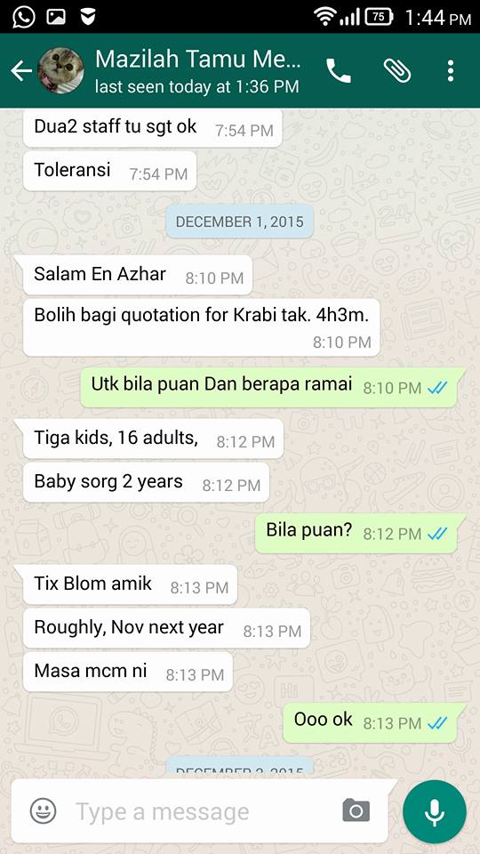 would back to Johor Bahru on the first flight. Morning call was at 03.30 AM, we